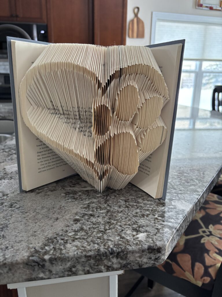- Download a pattern. You can find these on several sites. By googling “book folding”, you will find several sites with pattern ideas. Some are free, while others charge a small fee.