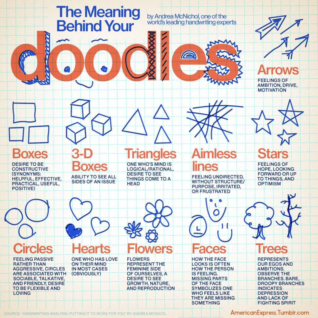 The art of doodling does not have a final design plan. There are no guidelines as to what it should look like. For some, it’s repeated lines or shapes, while others draw the same word in a variety of styles.