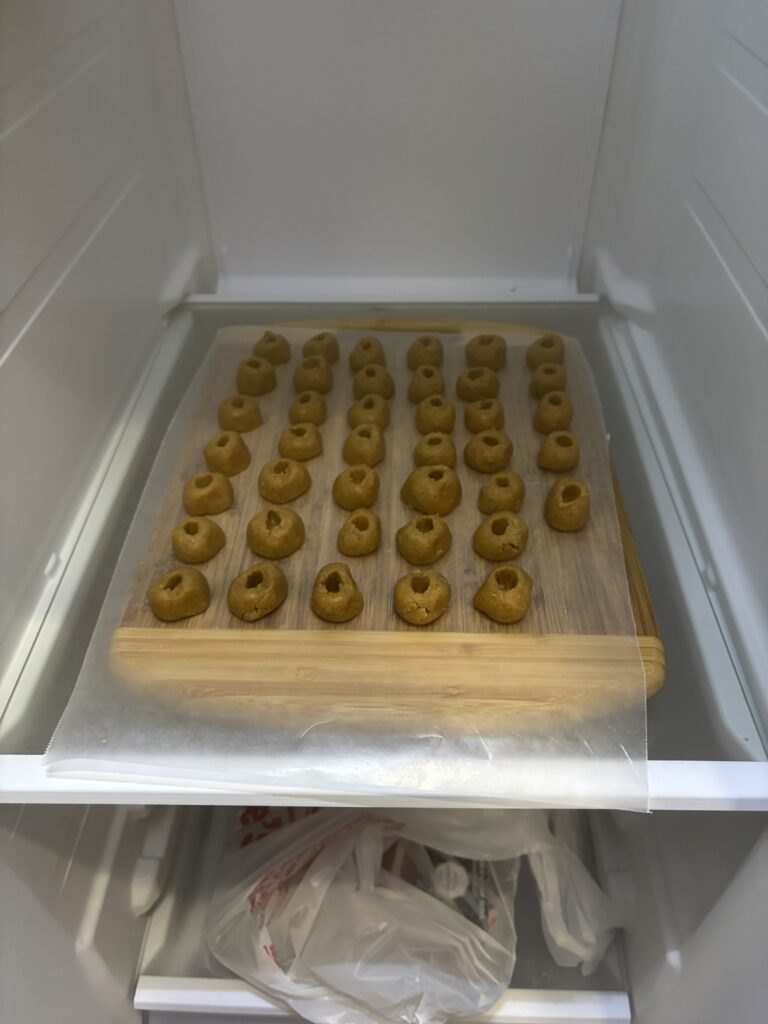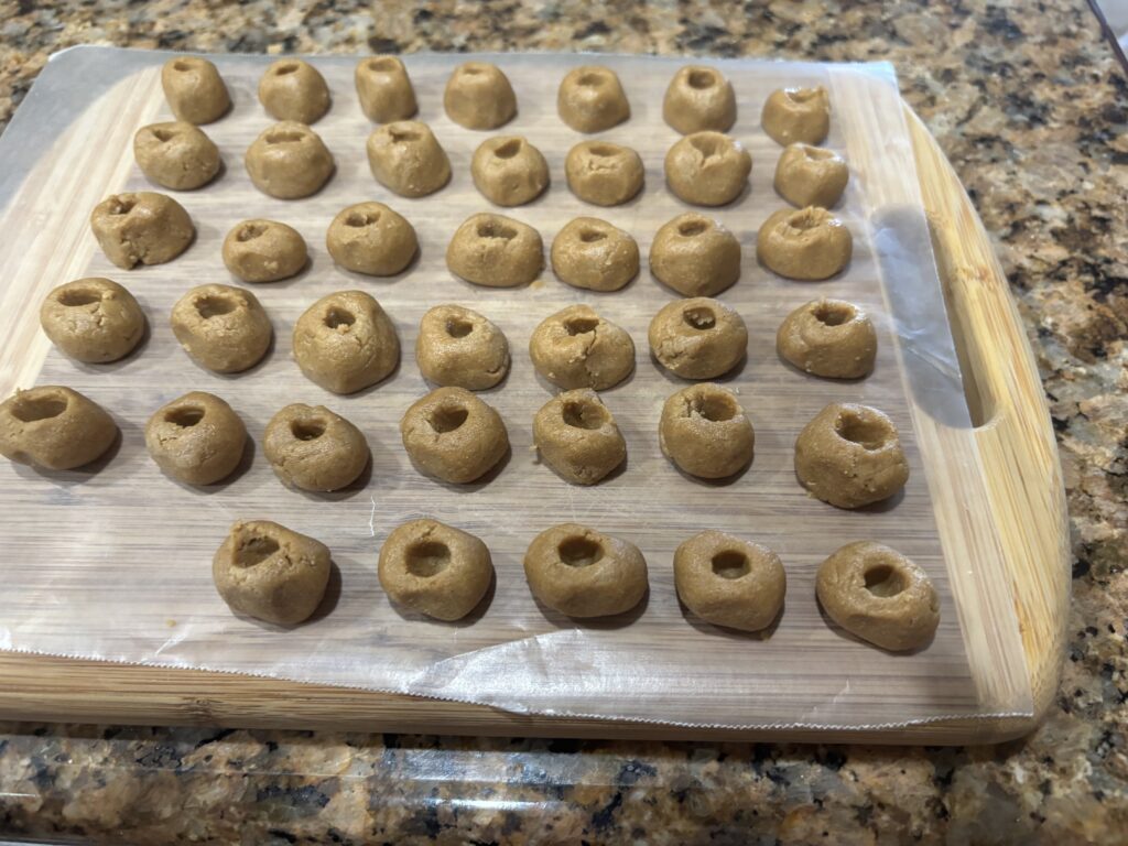Once you have formed all the pill pockets, put them in the freezer to firm them up.
