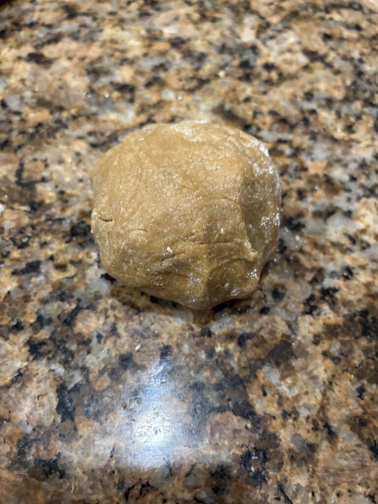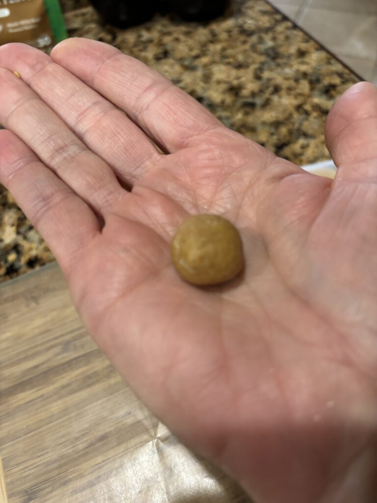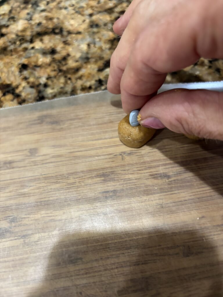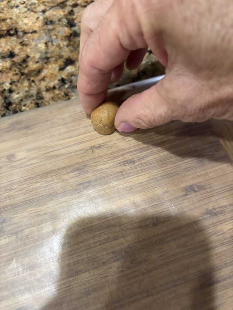Our dog Graham can smell the peanut butter, so he gets a little piece of the dough. I can’t leave him out!