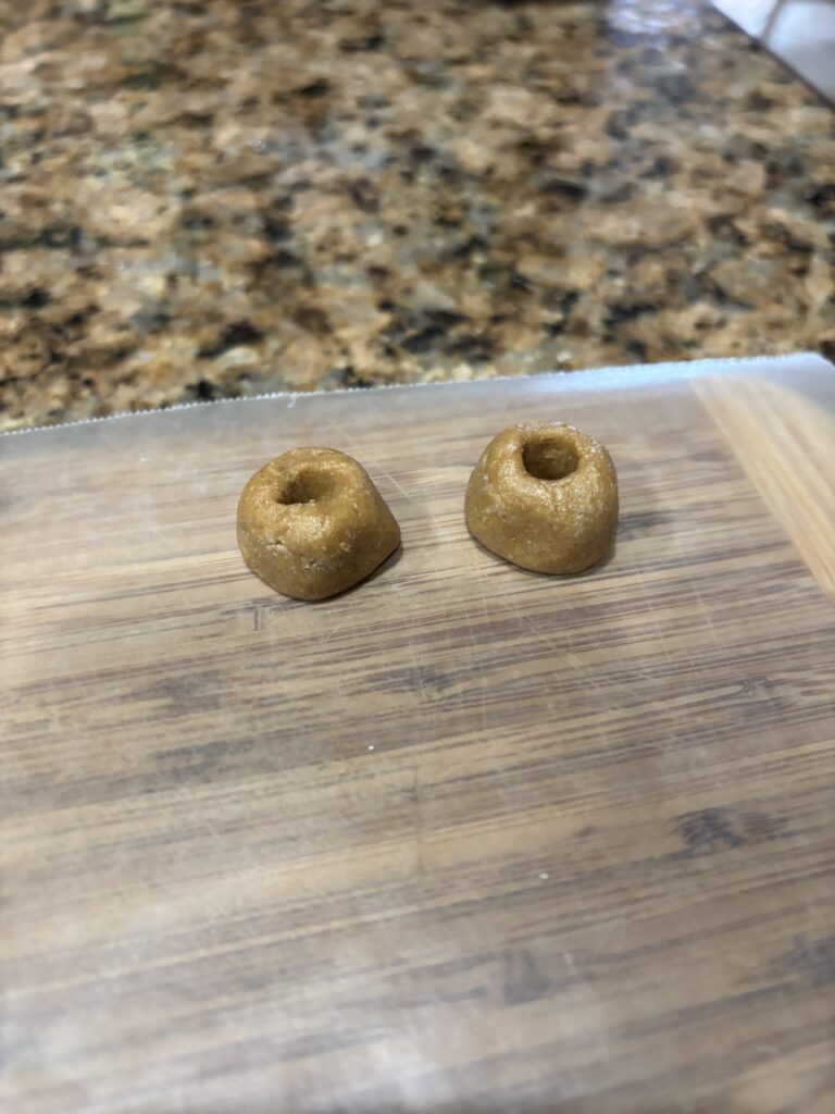 • The store bought pill pocket is on the left, the homemade one on the right.