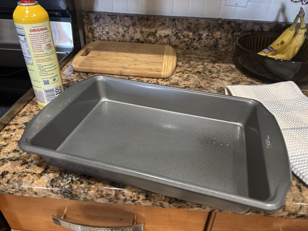 Preheat the oven to 350 degrees. Spray a 9×13 baking pan.