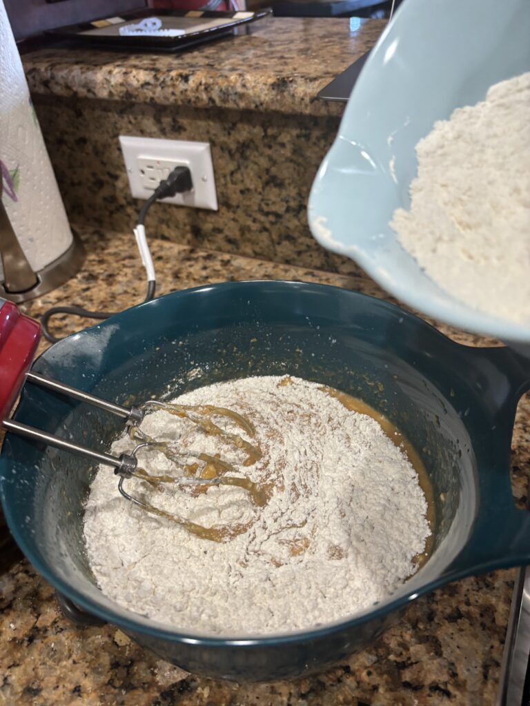 Gradually add the flour mixture to the creamed mixture, alternating with the buttermilk. Mix until just combined.