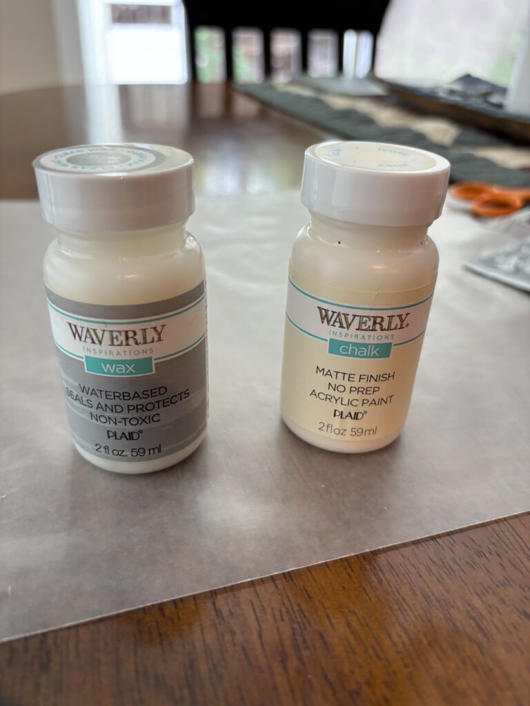 Wherever you buy your craft supplies, pick up Waverly chalk paint in your choice of color. To finish and seal your project, pick up Waverly Wax.