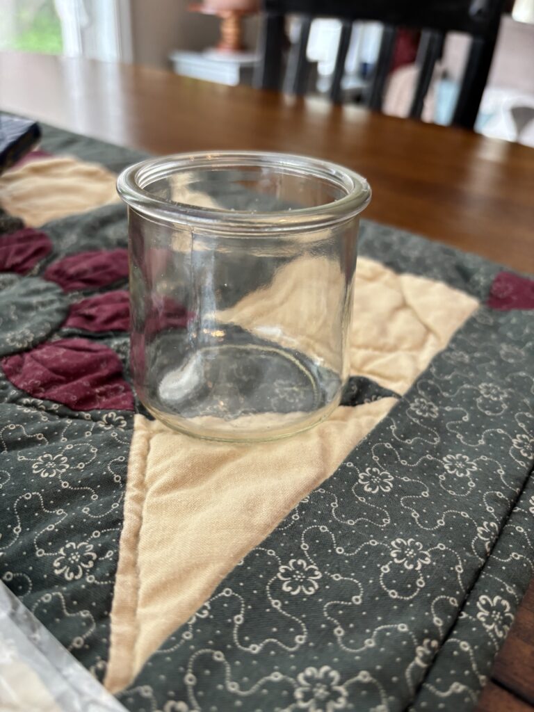 You may have seen Oui yogurt in the grocery store. The yogurt is great. I only buy it as a special treat. It comes in a cute glass container that I save for projects.