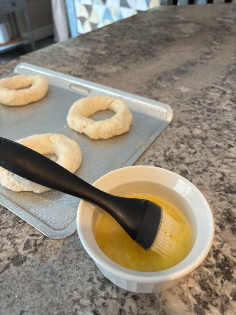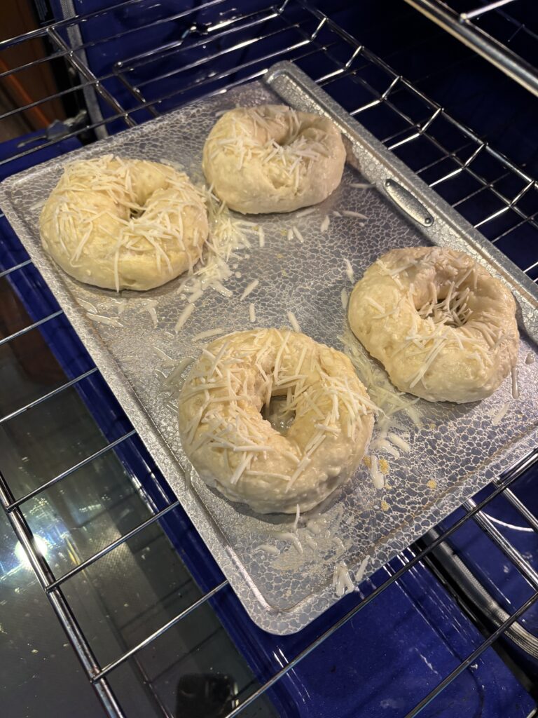 Now you can sprinkle everything bagel seasoning, cinnamon/sugar, garlic salt or cheese on top.
